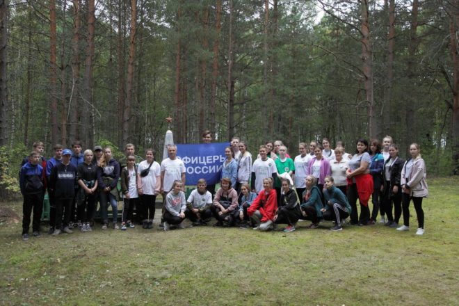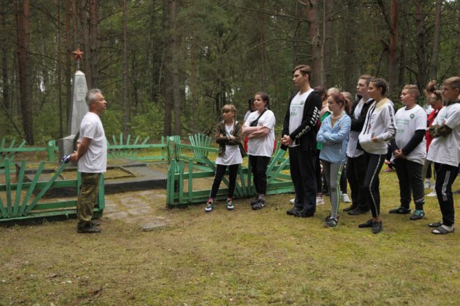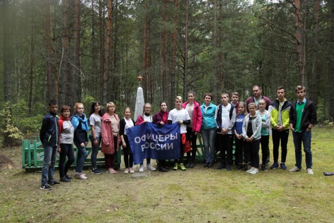 В рамках просветительской программы представители «ОФИЦЕРОВ РОССИИ» проводили патриотическое занятие – посещение братской могилы трех неизвестных солдат корпуса генерала Белова, павших зимой 1942 года в лесу у деревни Высокое. Было проведено четыре похода группами по 30 школьников. Общая протяженность маршрута составила девять километров. На братской могиле организаторы рассказали ребятам о необходимости сохранения памяти о Великой Отечественной войне и павших в боях за Родину.