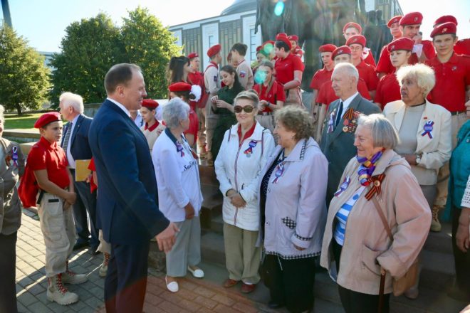 7 сентября на Поклонной горе собрались председатель Президиума «ОФИЦЕРОВ РОССИИ», Герой России, генерал-майор Сергей Липовой; председатель движения «Сильная России», член Президиума «ОФИЦЕРОВ РОССИИ» Антон Цветков; председатель Международного союза бывших малолетних узников фашизма, член Президиума «ОФИЦЕРОВ РОССИИ» Николай Махутов; член Президиума «ОФИЦЕРОВ РОССИИ» Вячеслав Панькин, а также бывшие узники концлагерей, представители общественных организаций, юнармейцы, школьники.