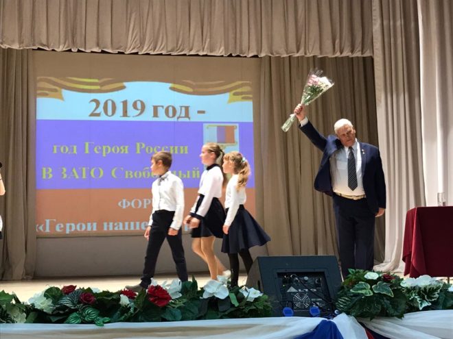 Герой России, летчик Владимир Шарпатов в рамках Года Героев посетил ЗАТО Свободный Свердловской области и встретился со школьниками и учащимися кадетских классов. Встреча состоялась по инициативе главы города, руководителя исполкома местного отделения «ОФИЦЕРОВ РОССИИ» Владимира Мельникова.