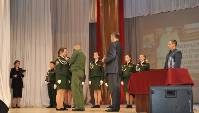 За своими заслуженными наградами выходили на сцену и юные активисты. Наиболее отличившихся кадет и командира военно-патриотического клуба «Патриот» наградили в тот день памятной медалью «За усердие» и подарками. С гордостью получали мальчишки и девчонки заслуженные награды из рук главы округа и Героев России Сергея Воронина и Сергея Мыльникова.