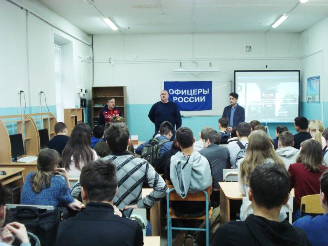 В городе Шуя члены местного отделения «ОФИЦЕРОВ РОССИИ» также провели урок мужества для 47 учащихся 8 и 9 классов школы №15.