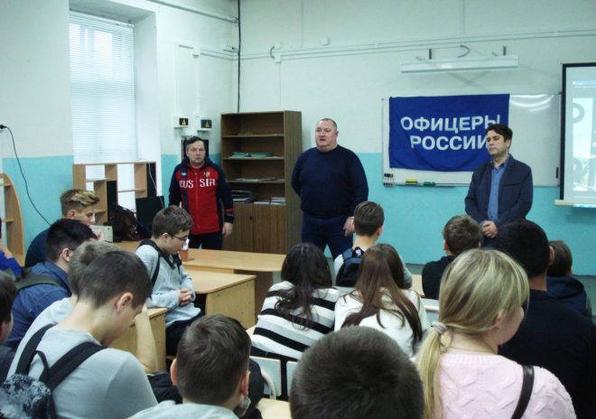 Активисты напомнили школьникам историю памятной даты – Дня Героев Отечества, а также о великомученике Георгии Победоносце, обсудили с ребятами вопросы подготовки юношей к предстоящему прохождению службы в Вооруженных силах России по призыву. Школьники также смогли посмотреть и обсудить видеоролик «Квалификационные испытания на право ношения крапового берета».