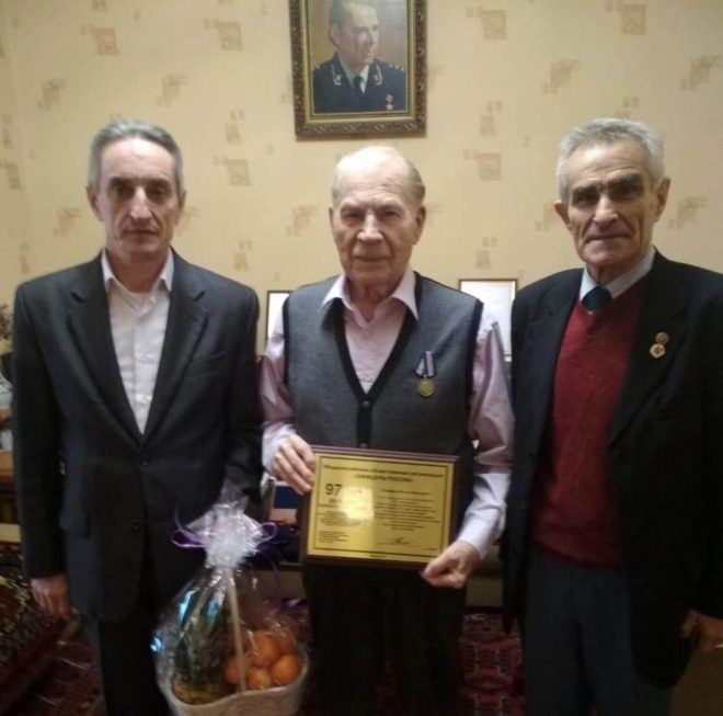 В преддверии Нового 2020 года член Президиума «ОФИЦЕРОВ РОССИИ» Сергей Ермоленко и член Совета высшего офицерского состава «ОФИЦЕРОВ РОССИИ» Александр Третецкий поздравили участника Великой Отечественной войны, Героя Советского Союза, министра юстиции СССР (1984-1989) Бориса Васильевича Кравцова с днем рождения, которому 28 декабря исполнилось 97 лет. Представители организации выразили слова благодарности фронтовику, пожелали здоровья, благополучия и преподнесли подарок.