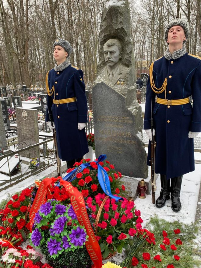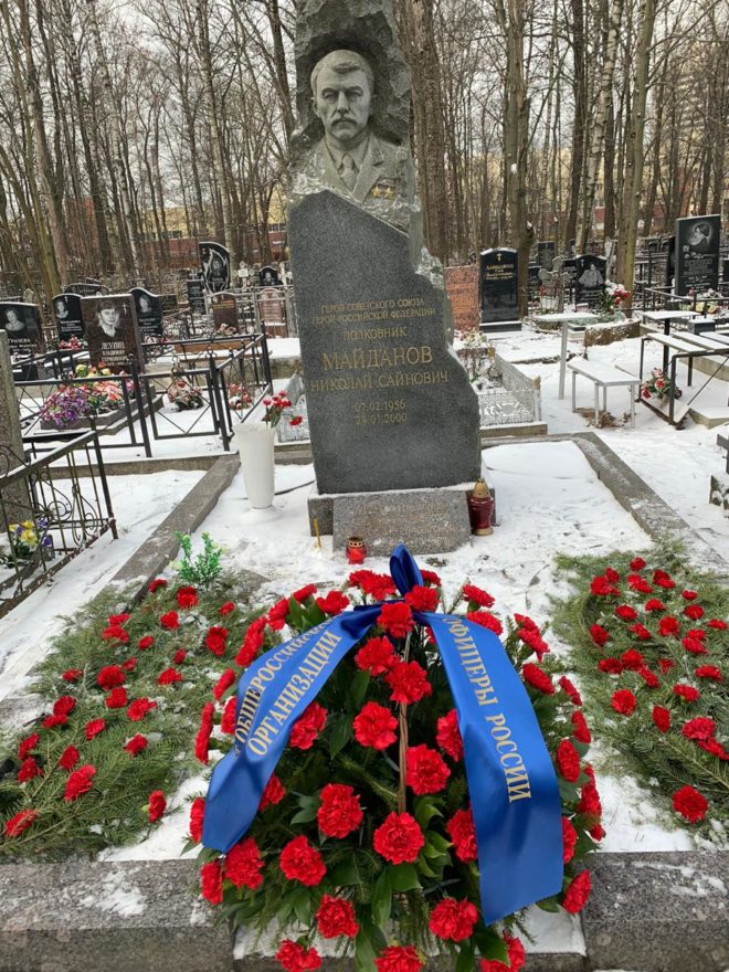 На аллее Героев Серафимовского кладбища в Санкт-Петербурге прошло памятное мероприятие, посвященное 20-летию трагической гибели Героя Советского Союза, Героя России Николая Майданова.