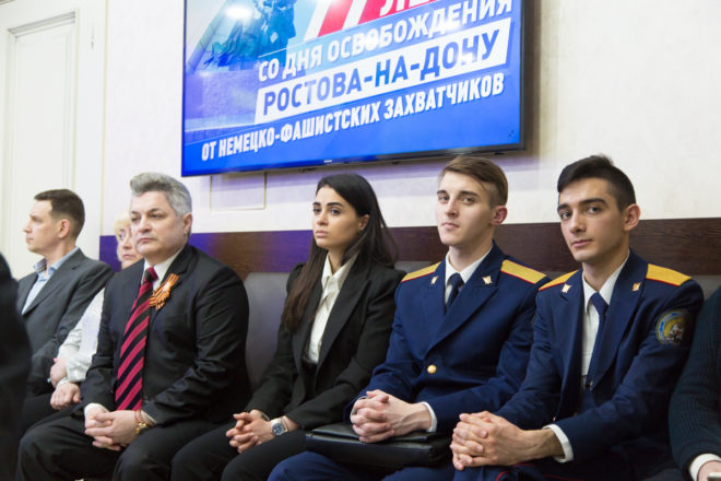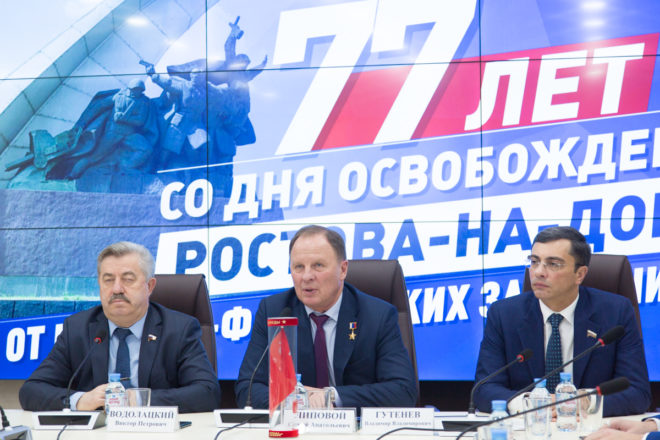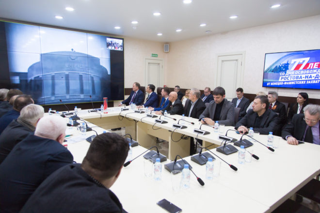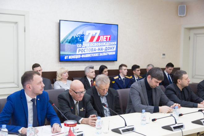 Большое внимание во время встречи было уделено важной дате – 77-й годовщине освобождения Ростова-на-Дону от немецко-фашистских захватчиков. Для врага город был очень важной стратегической точкой. Фашисты с особой жестокостью расправлялись с населением: за годы оккупации они расстреляли и замучили около 40 тыс. ростовчан, а еще 50 тыс. угнали в Европу на работы. Ростов-на-Дону освобождало свыше 140 тыс. бойцов Красной армии. Бои шли за каждый дом, каждую улицу. Ростов вошел в число десяти наиболее пострадавших от войны городов страны.