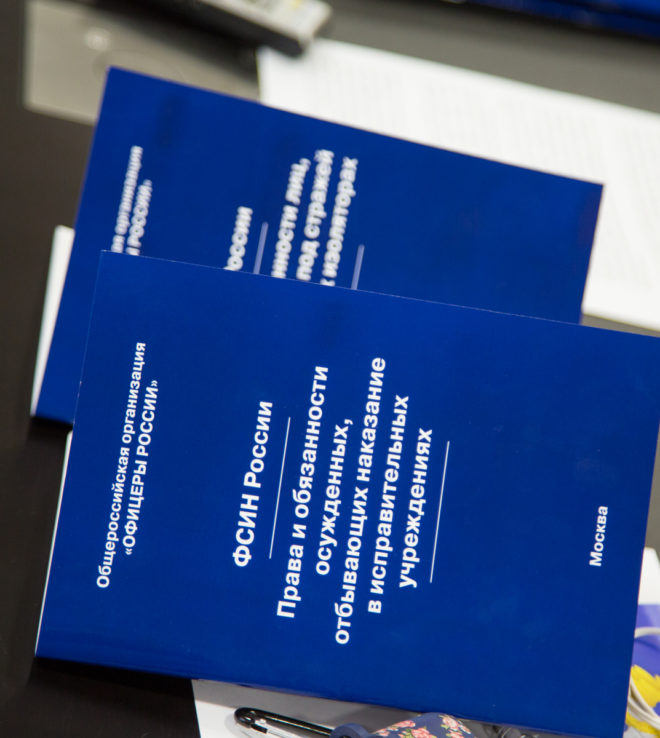 В своем выступлении Антон Цветков отметил, что 10 лет назад именно «ОФИЦЕРЫ РОССИИ» в сотрудничестве с ФСИН России выпустили первое издание брошюры, и работа будет продолжена, поскольку законодательство постоянно меняется. Поэтому с учетом совершенствования уголовно-исполнительного законодательства РФ проработаны вопросы, касающиеся порядка содержания в исправительных учреждениях и следственных изоляторах, питания, прогулок, этапирования, предоставления медицинской помощи, лекарственных средств и т.д.