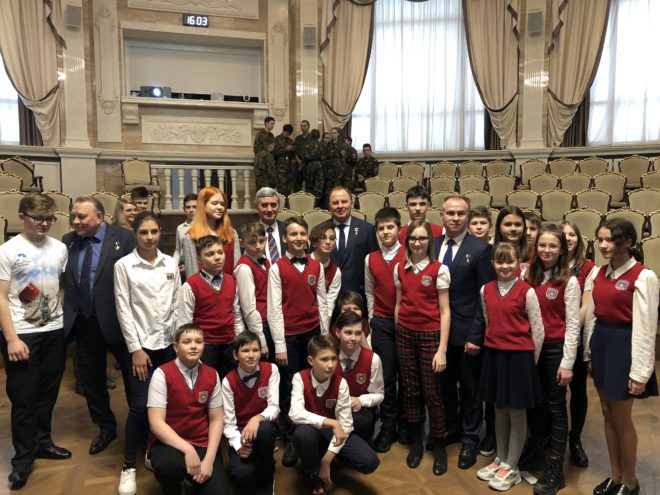 Но главным событием дня стала встреча Героев с воспитанниками военно-патриотических клубов и объединений, кадетских корпусов, юнармейцами, участниками поискового движения, представителями ветеранских организаций, волонтерского корпуса, студентами, работающей молодежью, которая состоялась в Правительстве Новосибирской области.