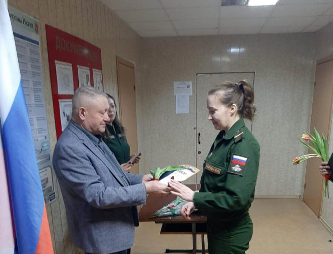 В Нижнем Новгороде региональный представитель «ОФИЦЕРОВ РОССИИ» в Нижегородской области Павел Пальцев совместно с представителями Департамента жилищного обеспечения Министерства обороны РФ поздравил женщин-военнослужащих Приволжского федерального округа с Международным днем 8 Марта. Он также торжественно вручил им документы на получение служебного жилья.