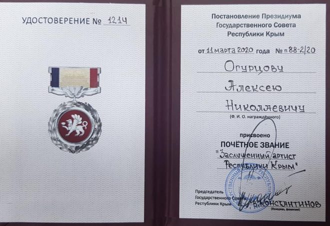 Поздравляем Алексея Огурцова с присвоением почетного звания «Заслуженный артист Республики Крым»