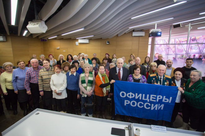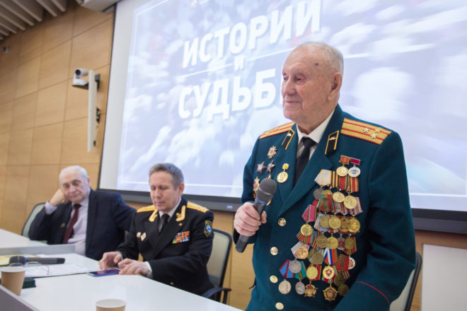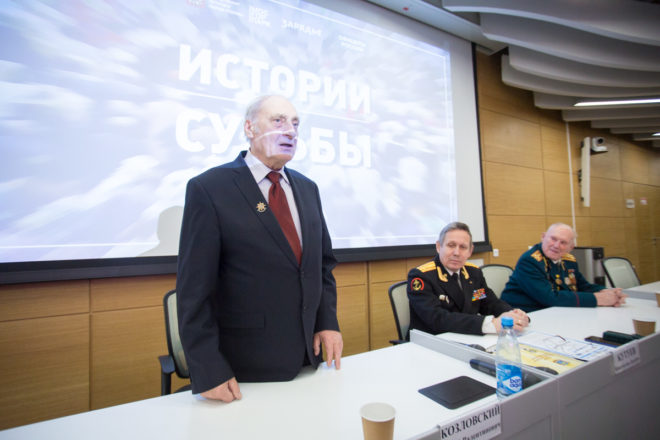 В рамках социального проекта «Истории и судьбы» в парке «Зарядье» состоялась очередная встреча с людьми удивительной судьбы, членами Совета мужества и отваги «ОФИЦЕРОВ РОССИИ» – фронтовиком-танкистом, полковником Владимиром Ерошенко и военным летчиком, майором Юрием Козловским, которые рассказали о себе, своей службе на благо Родины.