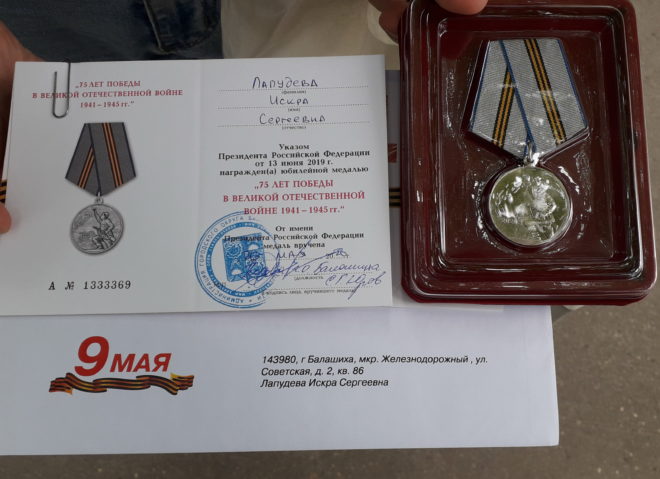 Юбилейные медали к 75-летию Победы от Президента России также были вручены блокадникам Ленинграда – Искре Лапудевой и Людмиле Барковой.