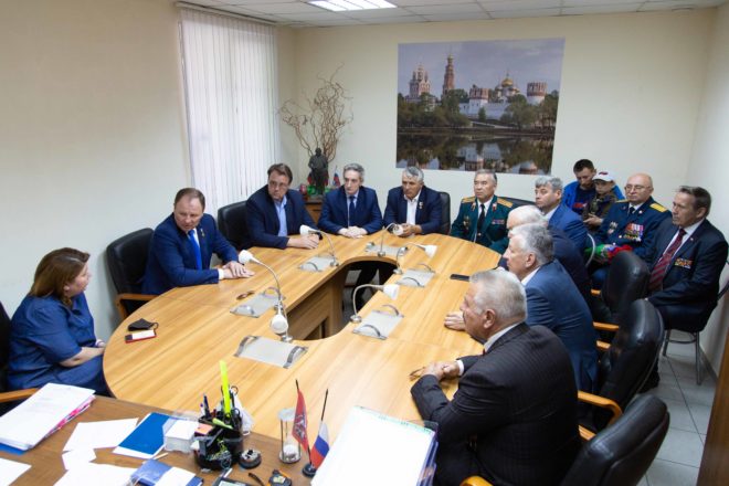 После церемонии возложения состоялось рабочее совещание, в котором приняли участие председатель Президиума «ОФИЦЕРОВ РОССИИ» Сергей Липовой, члены Президиума – Герой России Дибиргаджи Магомедов, генерал-майор Владимир Михалевич, Сергей Ермоленко, Константин Кутуев, первый заместитель руководителя Центрального исполкома по региональному развитию Валерий Степанов, ветераны боевых действий. На встречу были приглашены помощник заместителя министра обороны, курирующий Управление Минобороны по увековечиванию памяти погибших при защите Отечества, генерал-майор Александр Кирилин, а также руководители администрации Новодевичьего кладбища и управы района Хамовники.