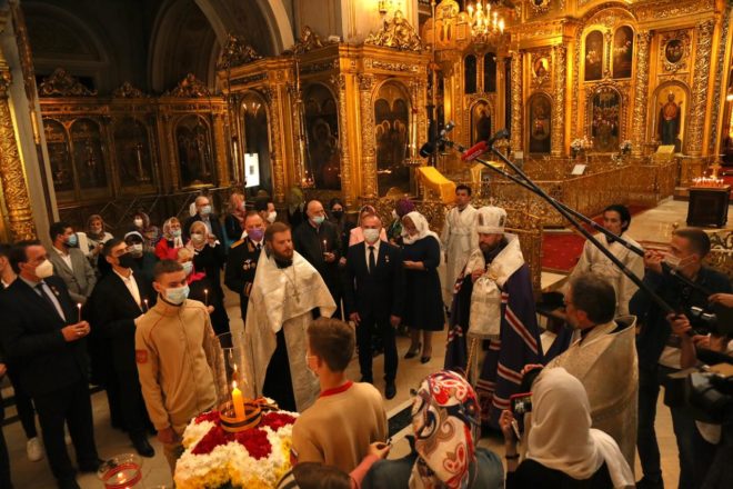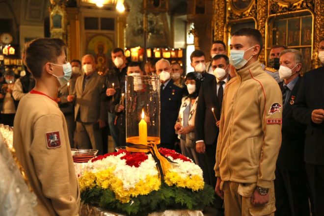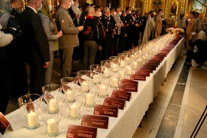 В 14.00 в Елоховском Богоявленском кафедральном соборе была зажжена Свеча Памяти всех бывших республик СССР, городов-героев, городов воинской славы РФ, а также проведено поминальное богослужение.
