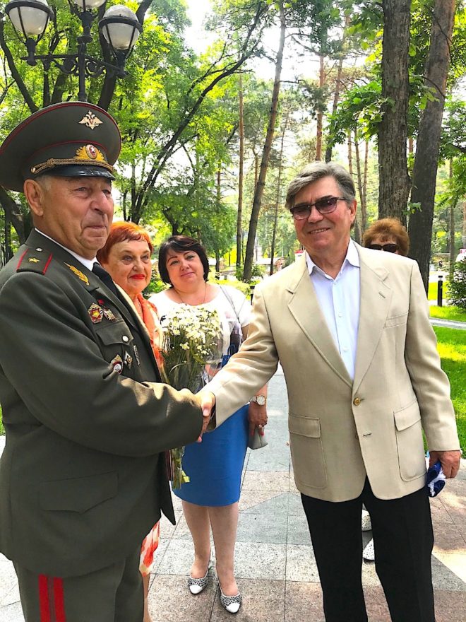 «К сожалению, в связи с пандемией коронавируса поздравление состоялось не в День любви, семьи и верности, а немного позже. Но мы не могли не поздравить Исаковых. Александр и Римма прожили вместе в любви и согласии 52 года, несмотря на бытовые трудности, бесконечные командировки мужа и переезды из гарнизона в гарнизон (а их было восемь у заместителя командующего ДВО). Супруги сохранили семью. А их старшая дочь, сменив семь учебных заведений, окончила школу с медалью. Желаем им мира и добра!» – отметил Михаил Сорокин.