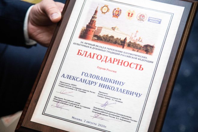 Так, председатель Совета по патриотическому воспитанию «ОФИЦЕРОВ РОССИИ», Герой России, полковник Александр Головашкин был отмечен благодарностью за личный вклад в укрепление патриотических, культурных и духовных традиций РФ.