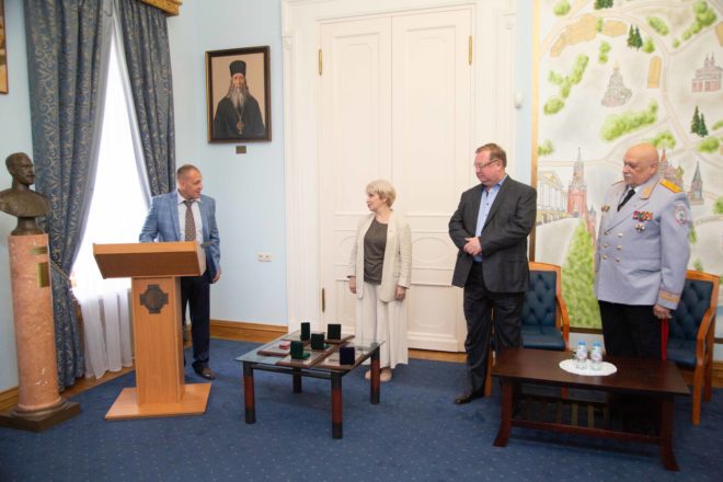 Церемония прошла в центре Императорского православного палестинского общества. На ней также присутствовали руководитель Центрального исполкома ОФИЦЕРОВ РОССИИ», генерал-лейтенант полиции Александр Михайлов и руководитель исполкома Московского регионального отделения Константин Кутуев.
