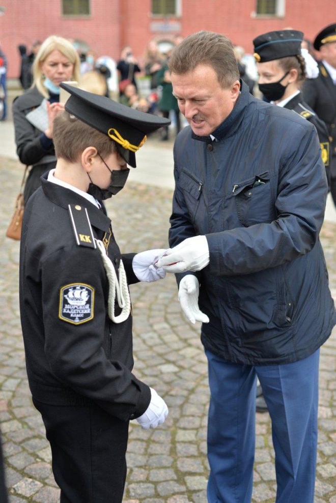 Ребят поздравили и пожелали успехов в учебе и спорте глава администрации Московского района Владимир Ушаков, заместитель главы района Александра Захарова, директор Морской школы Артур Шепелев, директор Морского технического колледжа им. адмирала Д.Н. Сенявина Виктор Никитин, проректор ГУМРФ им. адмирала С.О. Макарова Александр Горобцов, старший помощник капитана крейсера 1 ранга Балтийского флота «Аврора» Александр Бруховицкий, региональный представитель «ОФИЦЕРОВ РОССИИ» в Санкт-Петербурге, член регионального штаба движения «Юнармия» Владимир Кузьмин.