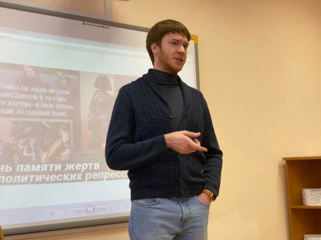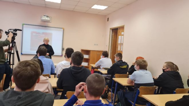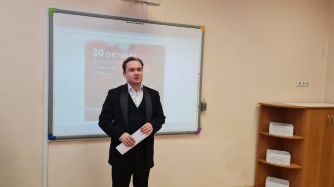 30 октября, в День памяти жертв политических репрессий, руководитель исполкома местного отделения «ОФИЦЕРОВ РОССИИ» в подмосковной Балашихе Розалия Абатурова провела урок памяти «Не погаснет свеча – будет долго гореть…» в Балашихинском техникуме.
