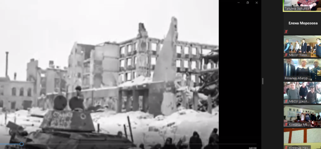 Выступления ветеранов сопровождались фрагментами из документального фильма, снятого немецкими журналистами, и видеороликом о судьбе легендарного участника Сталинградской битвы сержанта С.С. Полуэктова.