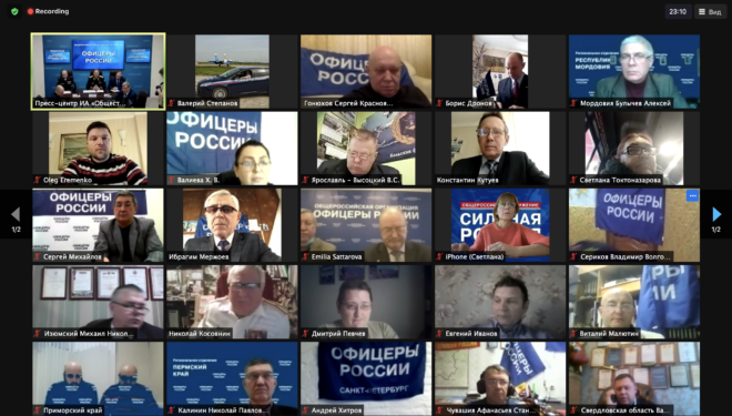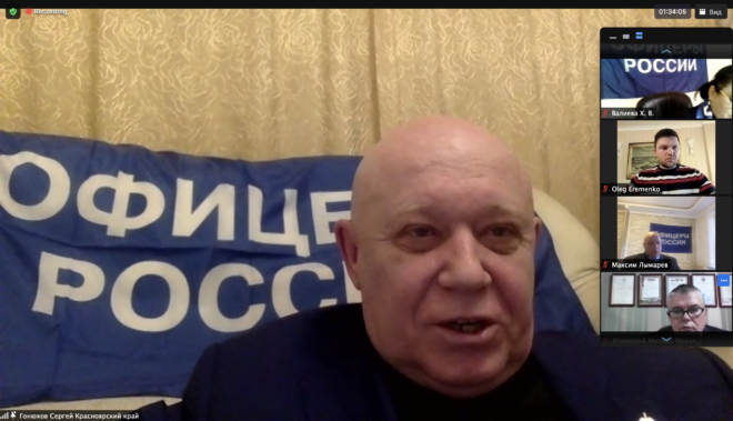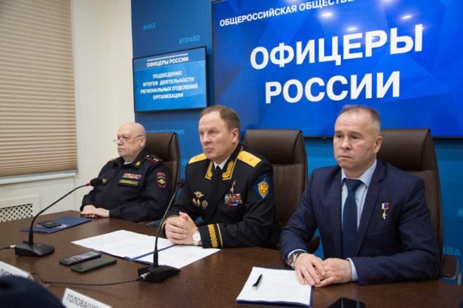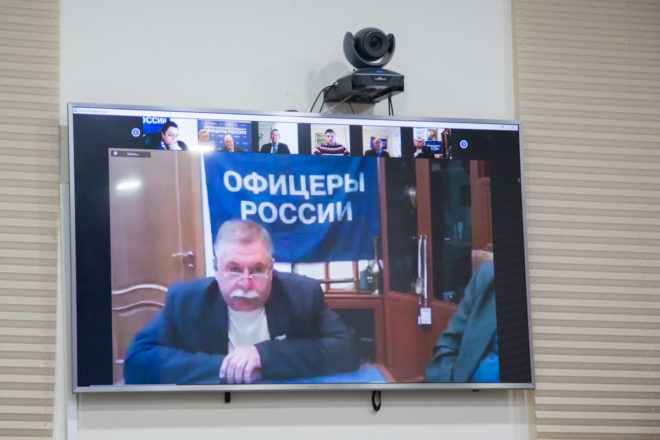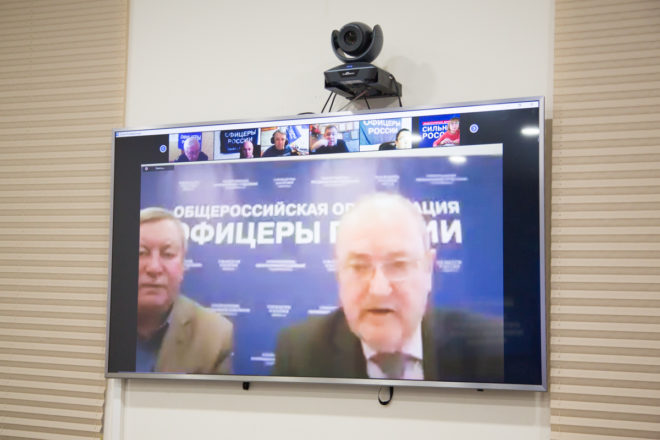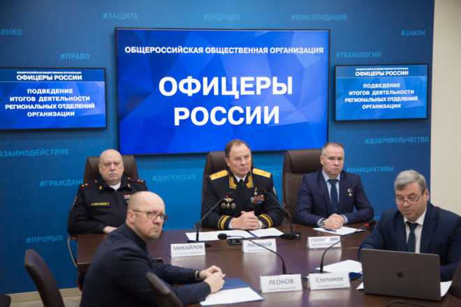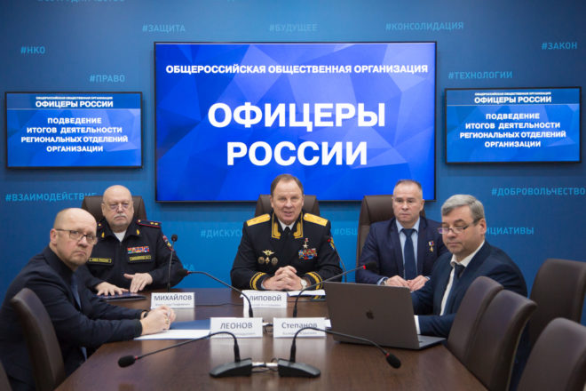 18 декабря состоялось очередное онлайн совещание с руководителями и активом региональных отделений «ОФИЦЕРОВ РОССИИ». В Доме общественных организаций присутствовали: председатель Президиума «ОФИЦЕРОВ РОССИИ», Герой России, генерал-майор Сергей Липовой; руководитель Центрального исполкома, генерал-лейтенант полиции Александр Михайлов; председатель Совета по патриотическому воспитанию, Герой России Александр Головашкин; первый заместитель руководителя Центрального исполкома организации по региональному развитию Валерий Степанов; член президиума регионального отделения в Новосибирской области Сергей Леонов. По видеосвязи к совещанию присоединились члены Президиума «ОФИЦЕРОВ РОССИИ» и активисты почти из 40 регионов РФ.