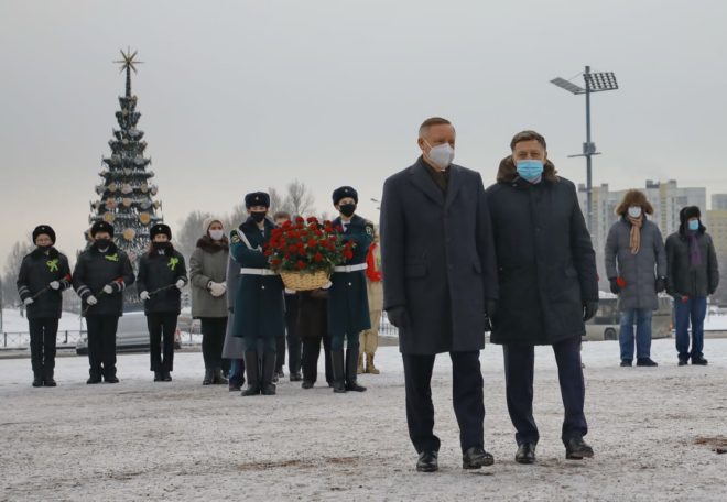 Траурные церемонии прошли у Монумента героическим защитникам Ленинграда на площади Победы и у монумента «Рубежный камень» на Невском пятачке, откуда в январе 1943 года начался прорыв кольца вокруг города.