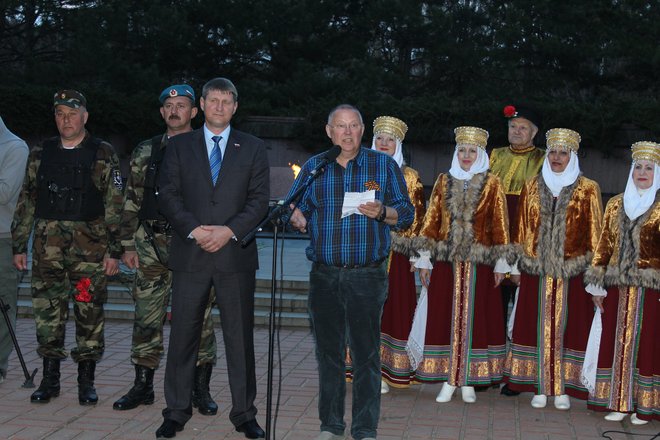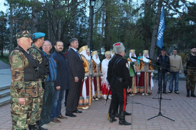 Участники автопробега рассказали о том, какие слова поддержки передавали крымчанам люди, встречавшиеся им в пути. Кроме того, казаки Енисейского войска исполнили патриотические песни и продемонстрировали виртуозное обращение с боевыми саблями. Собравшиеся также почтили минутой молчания память погибших воинов и возложили цветы к памятнику.