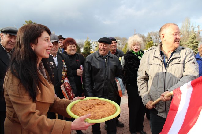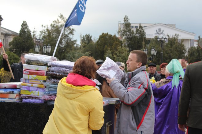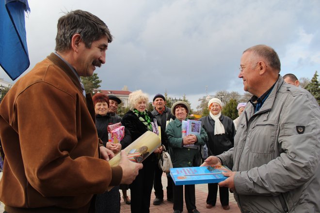 Симферопольцы встречали сибиряков по-домашнему тепло, хлебом-солью и душевными песнями в исполнении коллектива «Сибирячки». Состоялся импровизированный митинг, в котором приняли участие руководитель пробега «Сибиряки – Крыму» Сергей Хруль, член президиума регионального отделения «ОФИЦЕРОВ РОССИИ» в Крыму Александр Щурик, советник премьер-министра Крыма Михаил Шеремет, атаман станицы Манской Енисейского казачьего войска Виктор Крайник, представители «Землячества сибиряков в Крыму», бойцы самообороны, жители Симферополя.