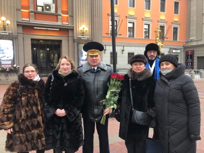 «ОФИЦЕРОВ РОССИИ» на церемонии прощания, которая прошла в столичном Театре имени Вахтангова, представляли председатель Президиума, Герой России, генерал-майор Сергей Липовой, председатель Совета по патриотическому воспитанию, Герой России, полковник Александр Головашкин, член Совета мужества и отваги, Герой России Роман Щетнев, руководитель исполкома Московского регионального отделения Константин Кутуев и другие.