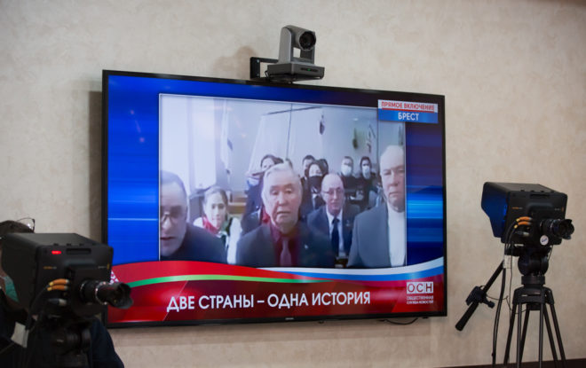 9 февраля в Доме общественных организаций состоялась российско-белорусская видеоконференция «Две страны – одна история». В ходе мероприятия участники вышли на связь из Москвы, белорусских городов-героев Минск и Брест, ряда регионов России, а также из Берлина.