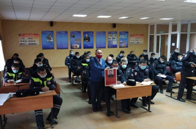 Председатель Совета ветеранов УМВД России по городу Элисте, активист организации «ОФИЦЕРЫ РОССИИ» в Республике Калмыкия Константин Макунов провел встречу с сотрудниками ОВД республики, посвященную памяти сержанта милиции Басанга Акугинова.
