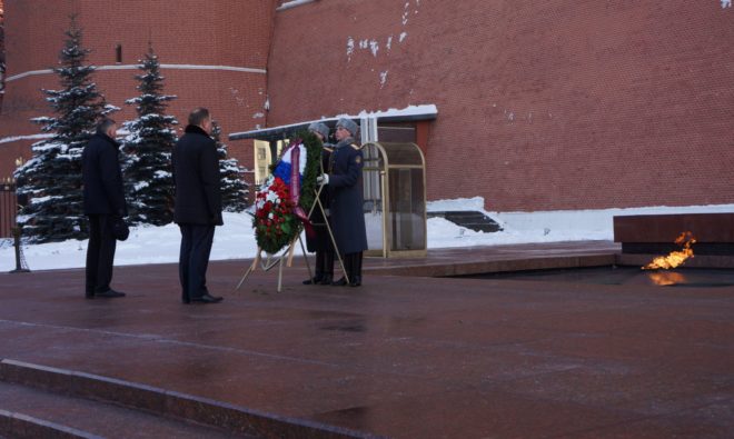 Делегация «ОФИЦЕРОВ РОССИИ» во главе с председателем Президиума, Героем России, генерал-майором Сергеем Липовым приняла участие в торжественной церемонии возложения венка и цветов к Могиле Неизвестного солдата у Кремлевской стены.