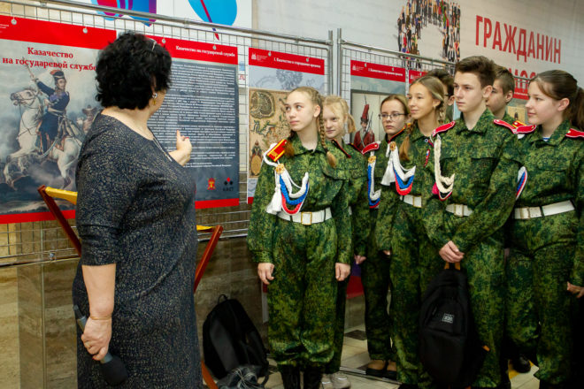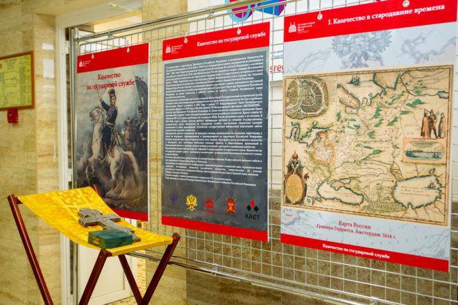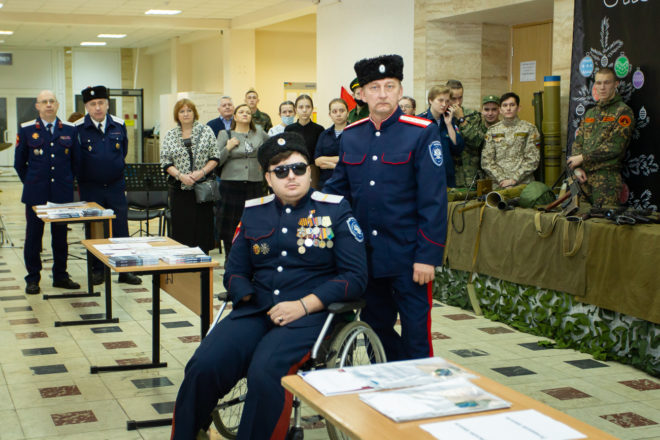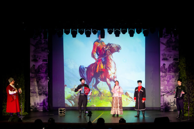 В фойе были организованы выставки «Казачество на государственной службе», «Война. Афганистан» и выставка макетов боевого оружия. Военные мелодии исполнил духовой оркестр «Возрождение» под руководством Евгения Култынина (ДК им. Воровского) и порадовал ярким выступлением ансамбль «Раменские казачата» ЦКК «Вольная станица» под руководством Екатерины Толстяковой.