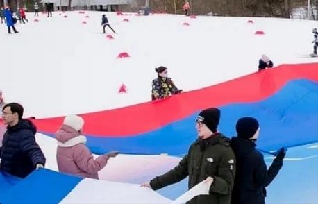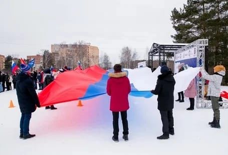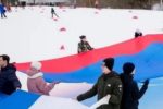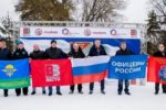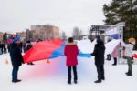 Участники развернули 25-ти метровый государственный флаг России и выстроились в форме буквы «Z» c флагами ветеранских организаций и РФ.