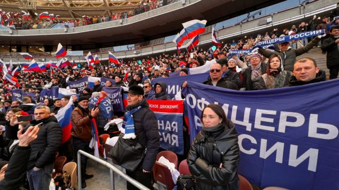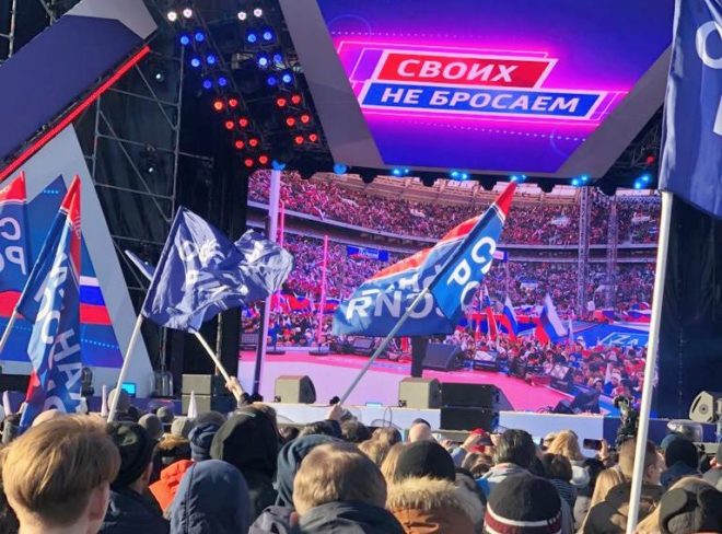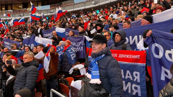 На стадионе «Лужники» и за его пределами собралось свыше 200 тыс. человек – люди разных возрастов, особенно много было молодежи. Трибуны украсили триколоры и флаги с буквой «Z», которая стала символом поддержки специальной военной операции по освобождению Донбасса.