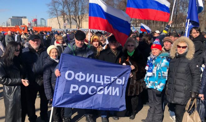 Региональные отделения «ОФИЦЕРОВ РОССИИ» приняли участие в различных праздничных мероприятиях, посвященных восьмой годовщине воссоединения Крыма и Севастополя с Россией «Крымская весна», которые прошли по всей стране 18 марта. Тем самым они выразили солидарность с крымчанами, сделавшими свой выбор в 2014 году.