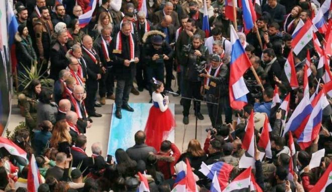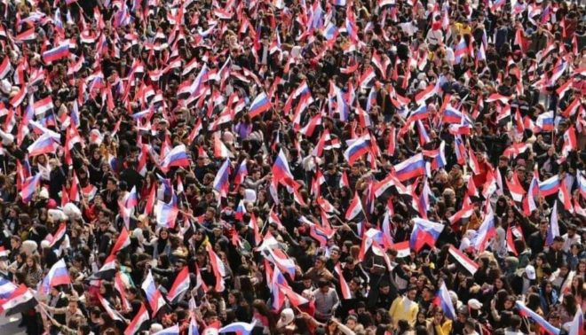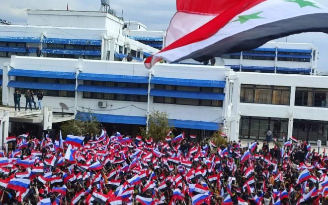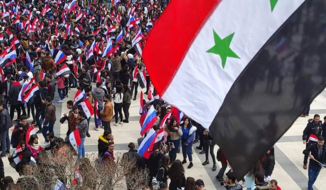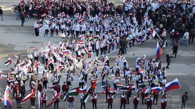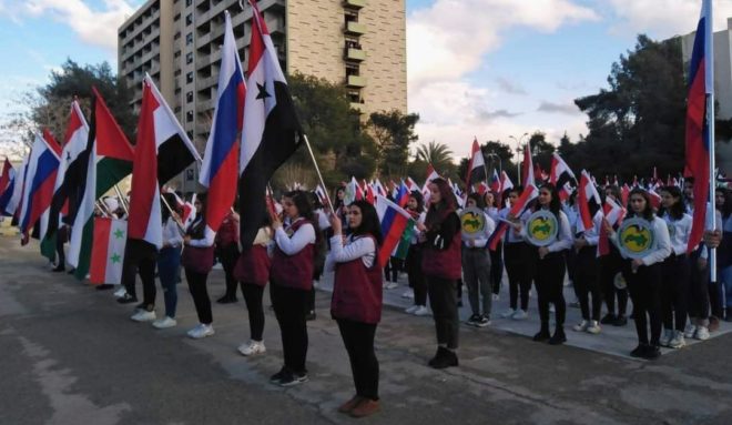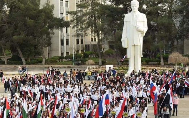 Студенты Университета Дамаска провели акцию в поддержку российской спецоперации на Украине. Участие в ней также приняли профессорско-преподавательский состав вуза, активисты организации «ОФИЦЕРЫ РОССИИ» в Сирии, представители других общественных организаций, политических партий, творческой интеллигенции.
