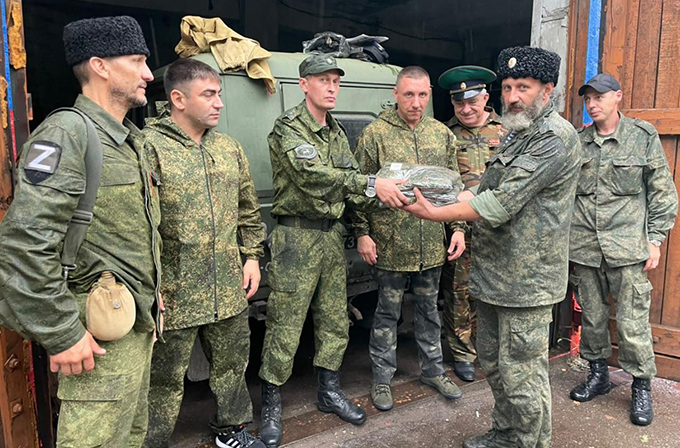 Члены ростовской делегации встретилась с военнослужащими 6-го отдельного гвардейского мотострелкового казачьего полка имени Матвея Платова Народной милиции ЛНР, а также наградили особо отличившихся бойцов. Кроме того, они вручили командиру полка освященный флаг с ликом Дмитрия Донского от председателя Президиума «ОФИЦЕРОВ РОССИИ», Героя России, генерал-майора Сергея Липового и передали казакам плащ-палатки, необходимые для несения службы.