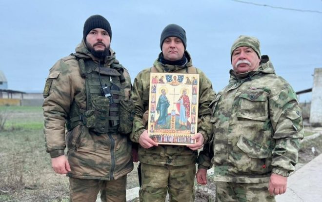Бойцам 99-го полка также была торжественно вручена охранная святыня – икона «Держава» («Святые покровители Русской земли»).