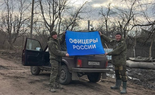 Кроме гуманитарной помощи саратовские офицеры привезли бойцам и пищу духовную. Так, начальнику штаба 99-го полка с позывным «Агат» был передан флаг «ОФИЦЕРОВ РОССИИ», который с благодарностью и честью принят в полк.