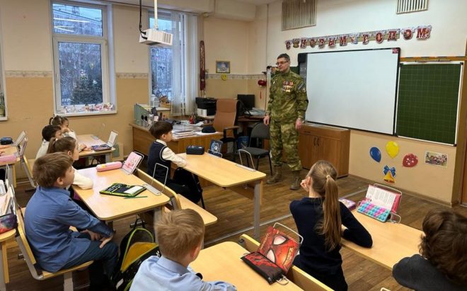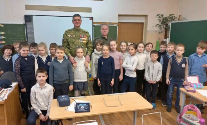 Ветераны боевых действий побывали в гостях у второклассников. Говорили с детьми о семье, Родине, учебе, спорте и дружбе. Учеников интересовало, какие награды получили ветераны, за что были награждены, спрашивали о службе, учебе в школе и даже про специальную военную операцию.