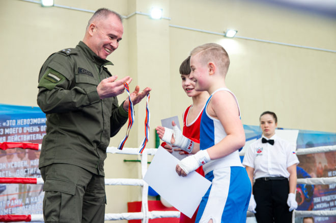 Приглашенными гостями спортивного события стали председатель Совета по патриотическому воспитанию «ОФИЦЕРОВ РОССИИ», Герой России Александр Головашкин, чемпионка мира по боксу среди боксеров профессионалов Светлана Кулакова, отец Героя России Алексея Осокина, погибшего при выполнении боевой задачи при освобождении Гостомеля, Николай Осокин, заслуженный артист России Николай Лукинский, участник СВО, кавалер ордена Мужества Георгий Беломыцев.