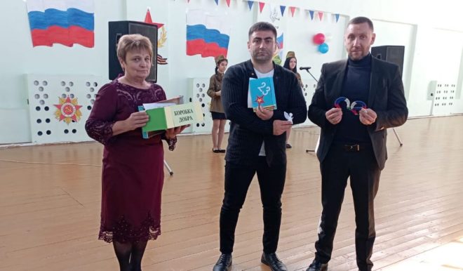 Выступающие от имени председателя Президиума «ОФИЦЕРОВ РОССИИ», Героя России Сергея Липового, донского парламента и депутата Госдумы Виктора Водолацкого поздравили всех учеников и коллектив учителей с праздником, а также передали школе подарки, газонокосилку и продуктовые наборы для многодетной семьи из поселка Садовый Багаевского района.