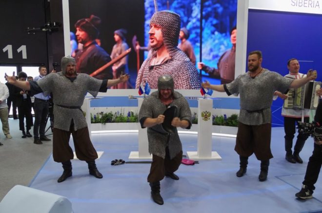 «Важно отметить консолидацию усилий заинтересованных лиц в рамках работы площадки, которые могут значительным образом повлиять на укрепление экономики нашей страны и укрепить престиж России на международном уровне. Поэтому мы постарались придать нашей площадке визуальный сильный образ в лице богатырей, а также готовность защищать интересы России в виде военнослужащих», – отметил Сергей Леонов.