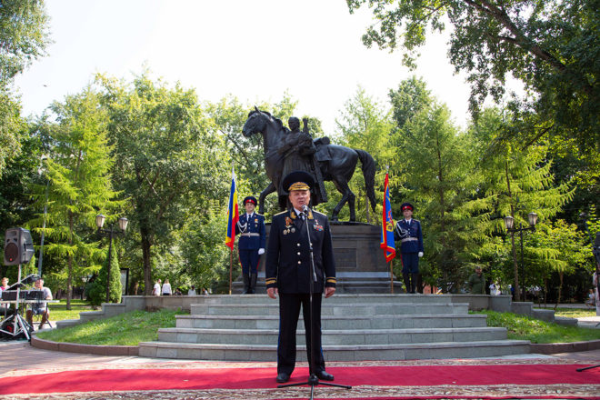 Завершилась официальная часть акции возложением цветов к памятнику Матвею Платову и торжественным парадом.