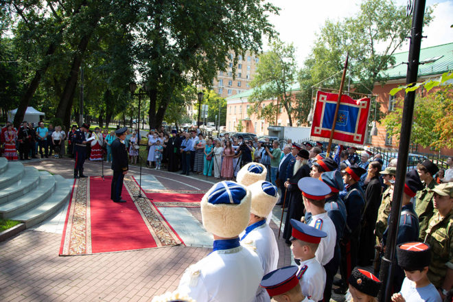 Открыл мероприятие председатель Президиума «ОФИЦЕРОВ РОССИИ», Герой России, генерал-майор Сергей Липовой. «Эта акция посвящена, в первую очередь, нашей молодежи, юным казачатам – будущим защитникам Родины. Сегодняшний день – это день нашей памяти, нашей истории, это фундамент, на котором мы стоим», – сказал он.