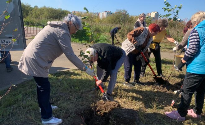 В мероприятии участвовали более 100 человек – глава администрации Советского района Вячеслав Шипицын, а также представители администрации, ветераны, студенты индустриального техникума, силовых структур, жители района, которые высадили 90 молодых березок.