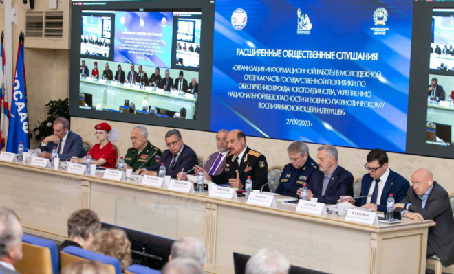 В Общественной палате РФ прошли расширенные общественные слушания «Организация информационной работы в молодежной среде как часть государственной политики по обеспечению гражданского единства и военно-патриотическому воспитанию юношей и девушек».