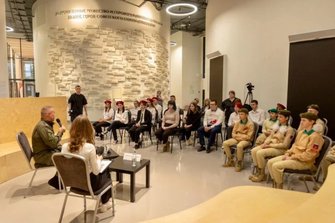 Активисты задавали Александру Николаевичу вопросы о том, как семья восприняла известие о награждении, как его дети относились к опасной службе, а также о ранениях, которые он получал во время операций, и восстановлении после них.