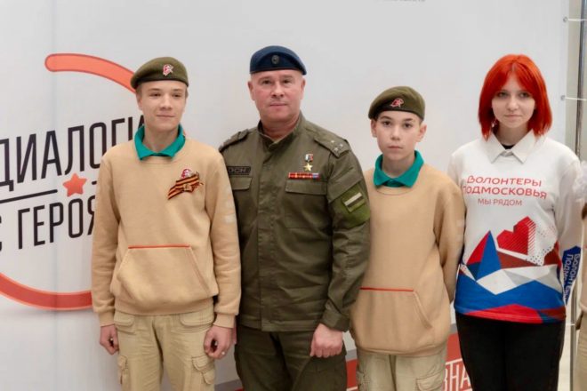 Председатель Совета по патриотическому воспитанию «ОФИЦЕРОВ РОССИИ», Герой России Александр Головашкин в рамках Всероссийского проекта «Диалоги с Героями» встретился с активистами Кожинского и Космодемьянского отделений «Юнармии» и волонтерами Ресурсного центра. Встреча прошла на площадке музейного комплекса «Зоя» в деревне Петрищево Рузского городского округа.