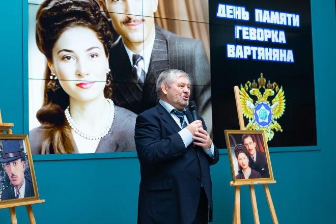 С докладом о жизненном пути легендарного разведчика экстра-класса Геворка Вартаняна и его супруги Гоар, с юных лет связавших свою судьбу с советской внешней разведкой, и отдельными аспектами их длившейся более 40 лет разведывательной работы в разных странах, выступил генеральный директор фонда «Служу России» Феликс Фламм.